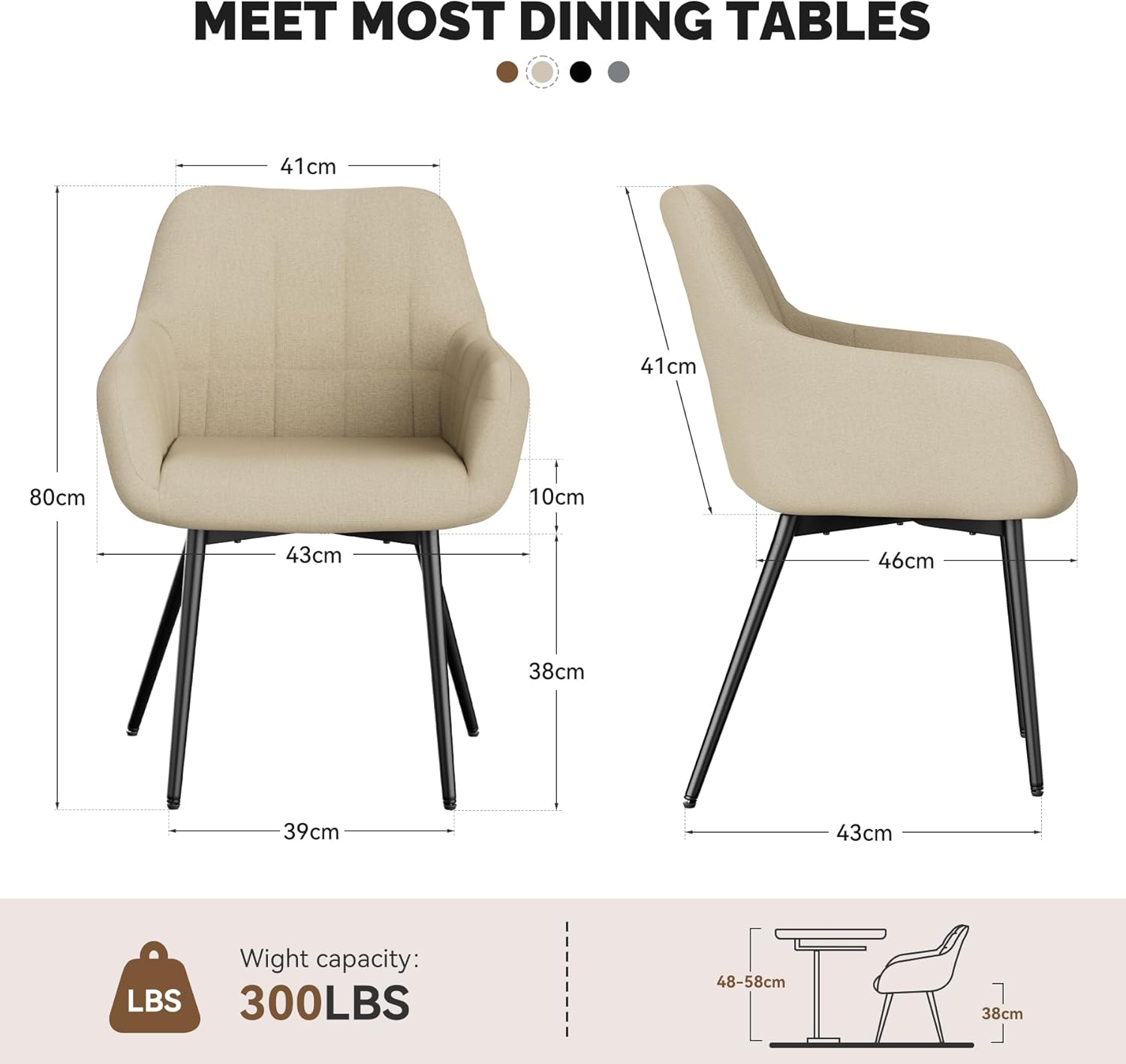 - Comfortable and ergonomic:the modern curved backrest with armrests and padded seat (3 cm brand new high density foam) make the dining chair ergonomic and provide sufficient support for the back and spine for lasting relaxation
