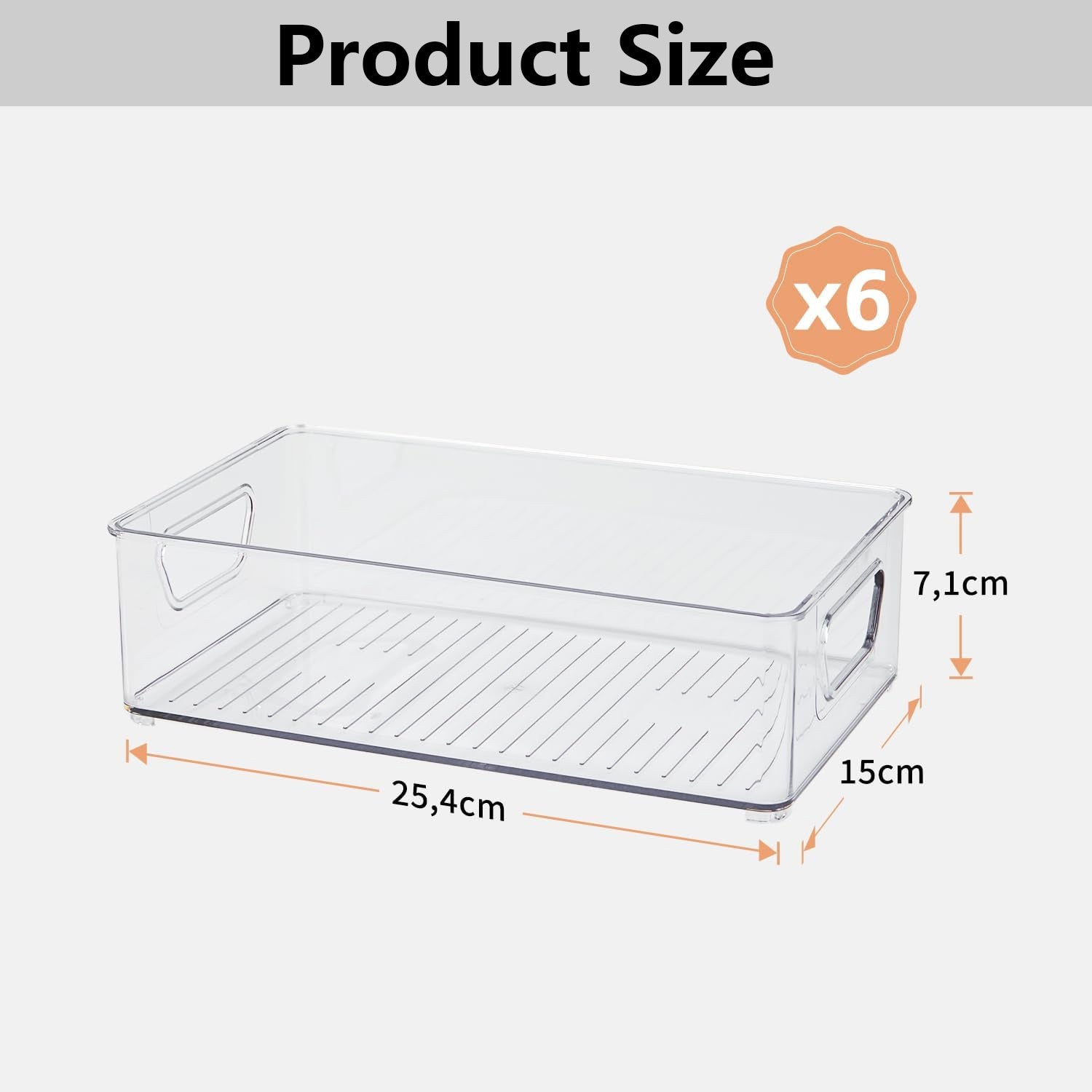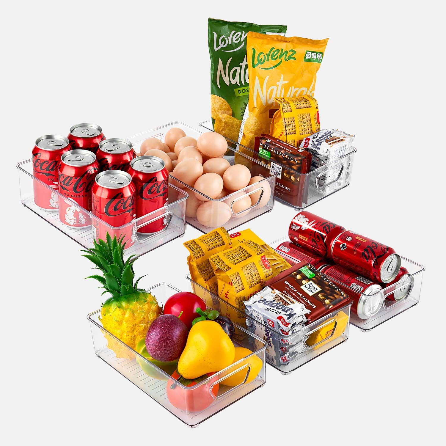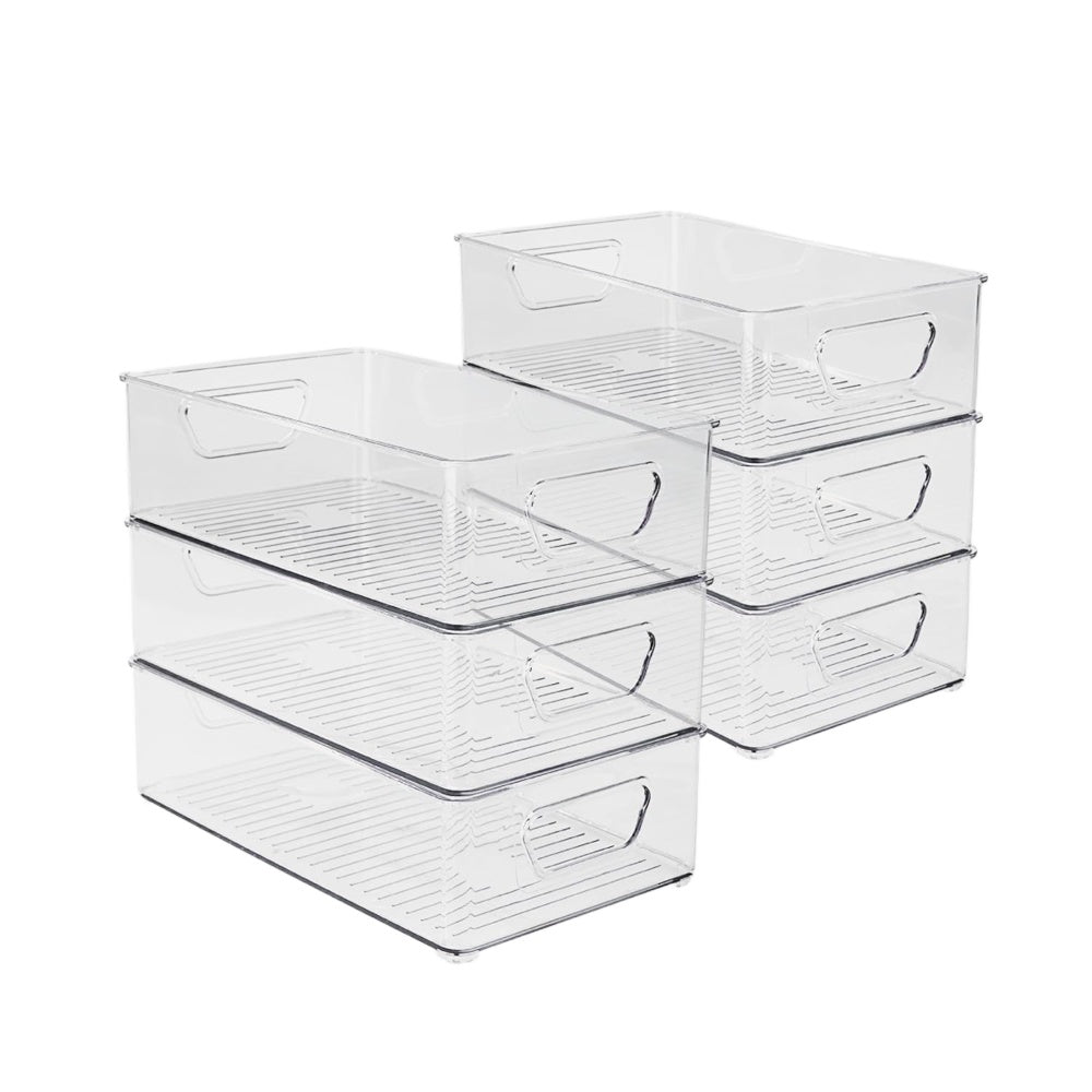 Kerilyn 6-Pack Transparent Stackable Kitchen Organizer Fridge & Pantry Storage Bins