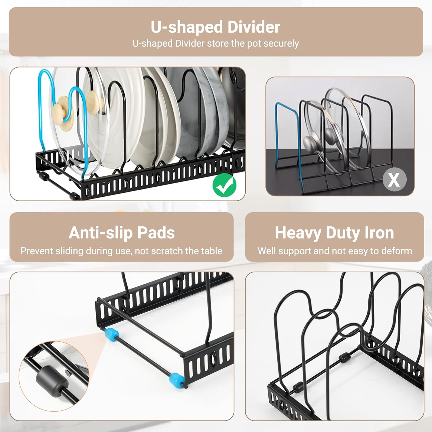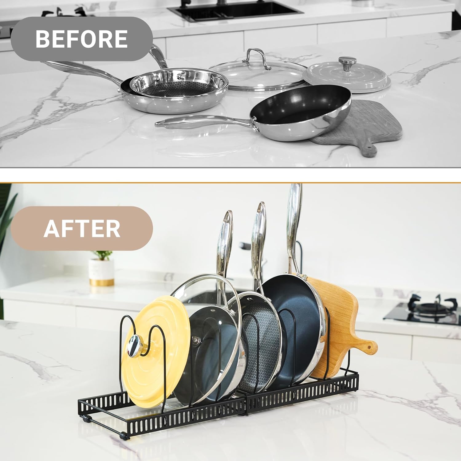 🗄️ Expandable Pot Lid Organizer – Smart, Adjustable Kitchen Storage