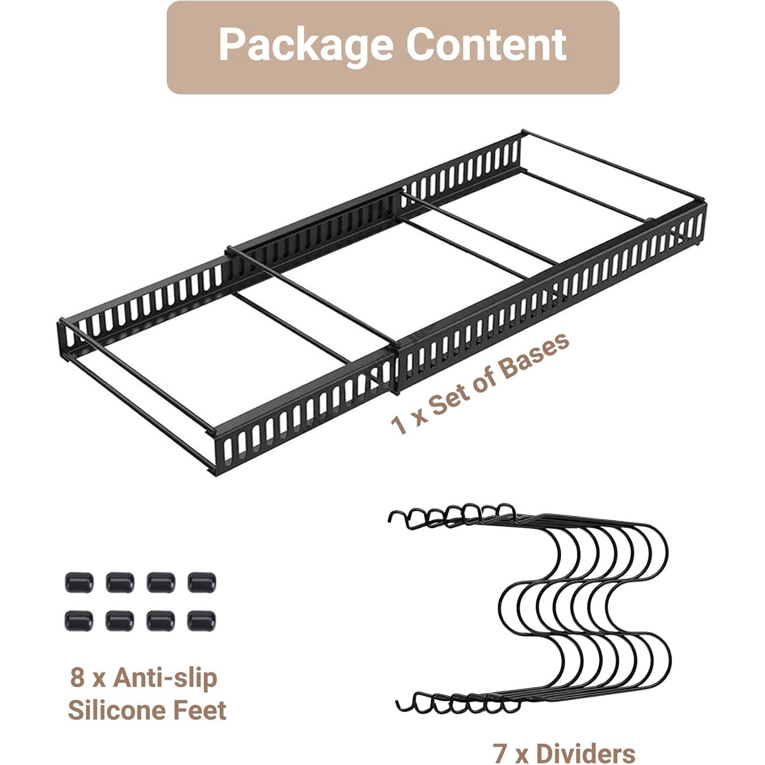Measuring **22.8” W x 7” D x 7” H (58 x 18 x 18 cm)**, this versatile rack adjusts to fit your storage needs: