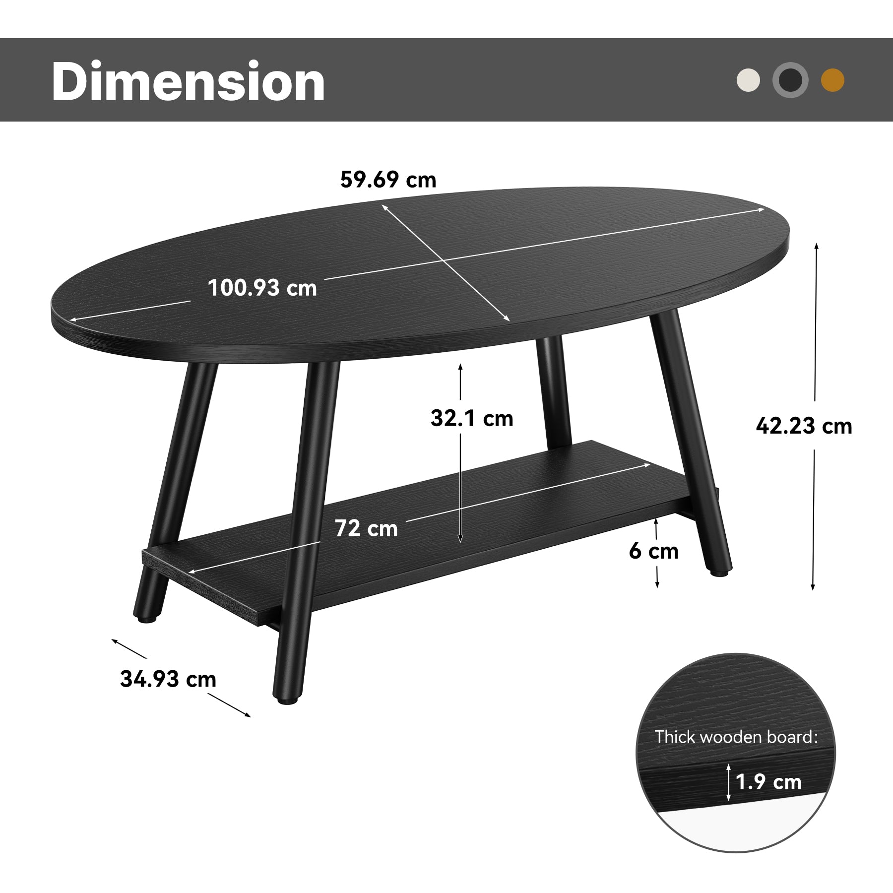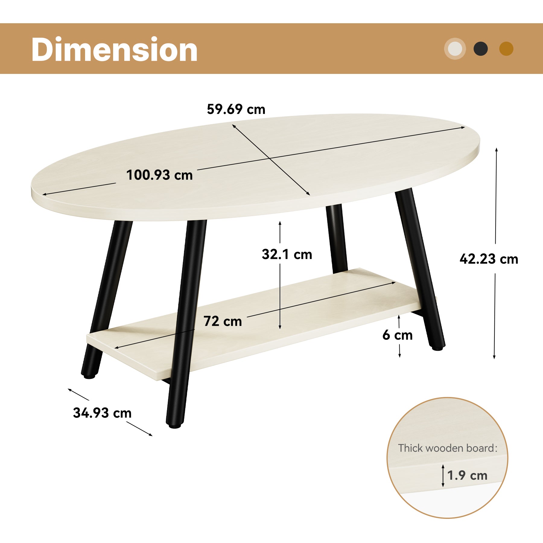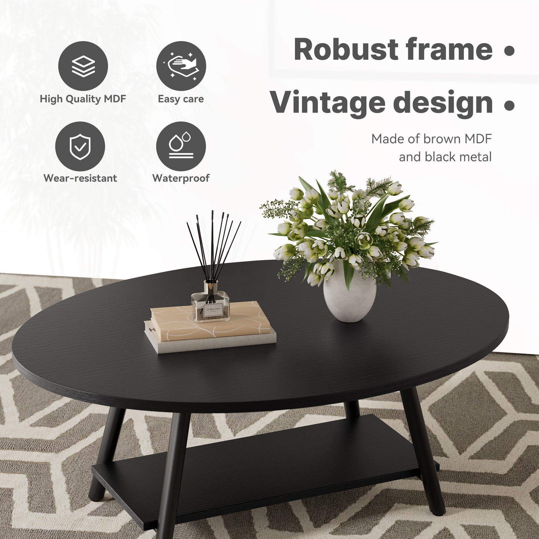 Nalupatio Oval 2-Tier Coffee Table – Solid Wood, Metal Frame