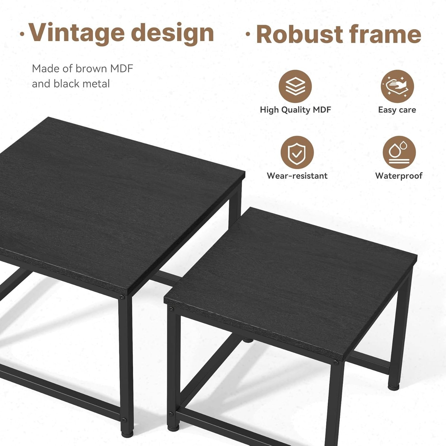 Nalupatio 2-Piece Wooden Coffee Table Set – Square, Metal Frame