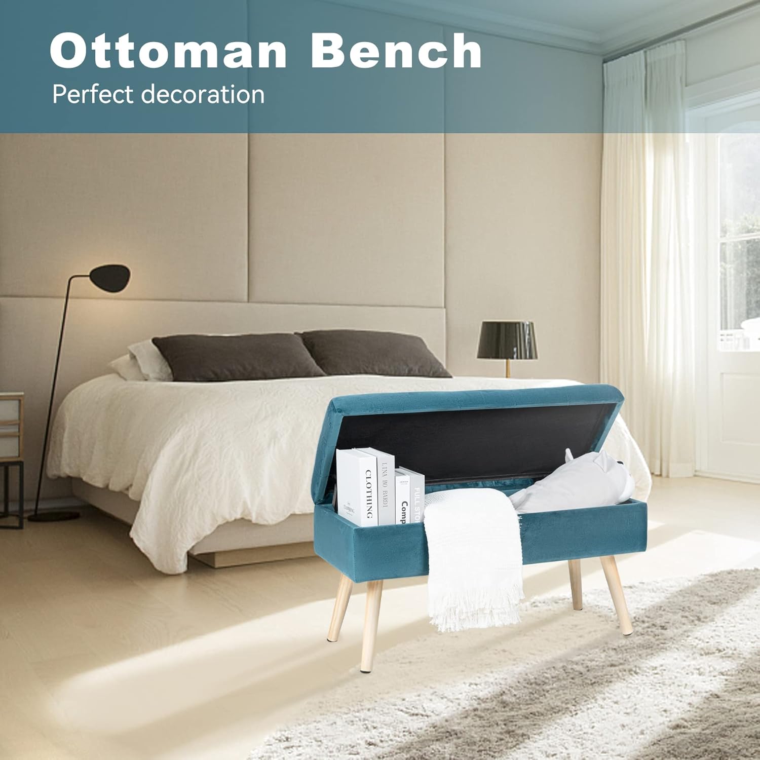 Nalupatio Storage Ottoman Bench – Upholstered, Safety Hinge, for Bedroom