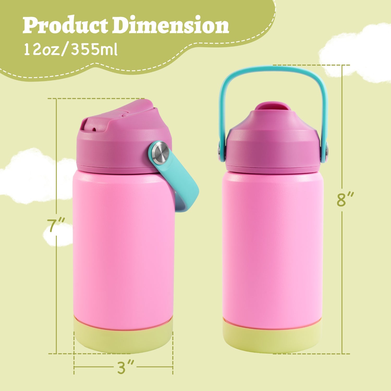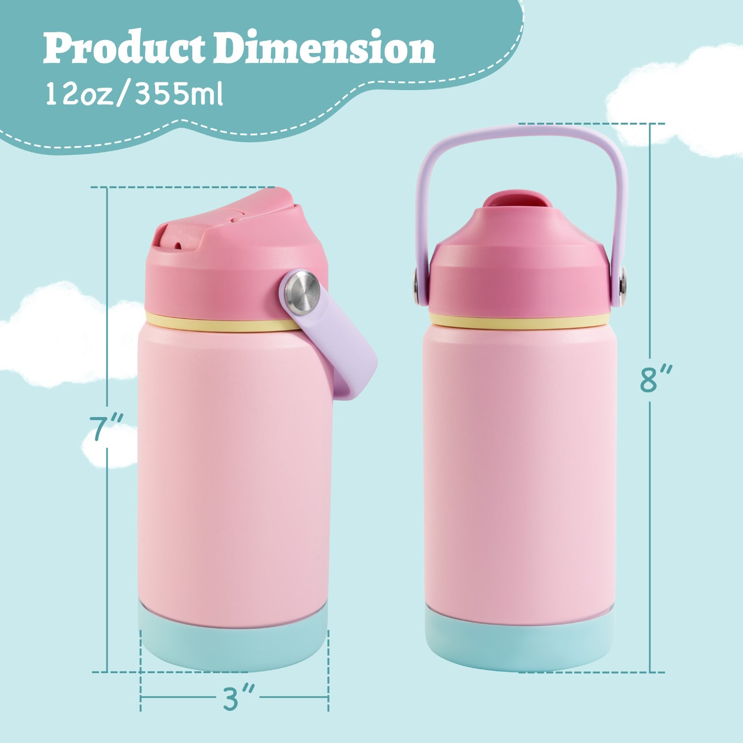 Kerilyn Stainless Steel Kids Insulated Bottles 2-Pack, Leak-Proof with Straw