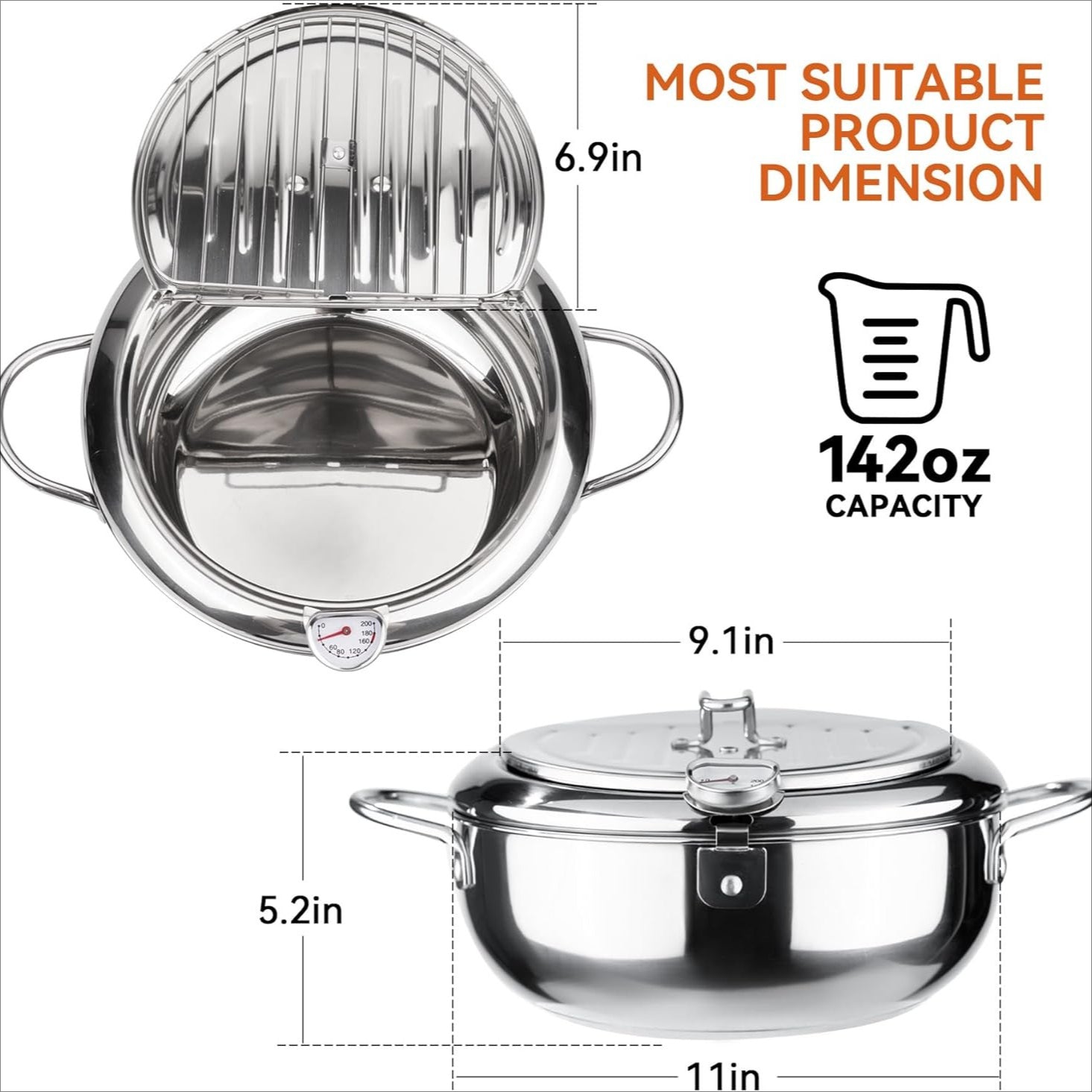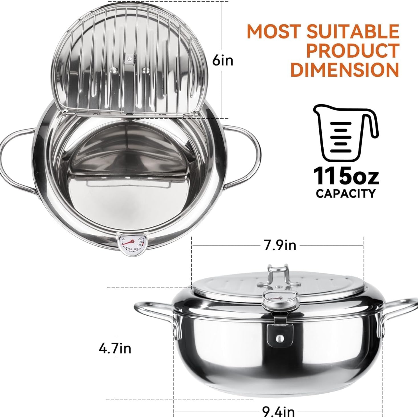 Monitor oil temperature with precision using the included detachable thermometer—ensuring perfect frying conditions every time.