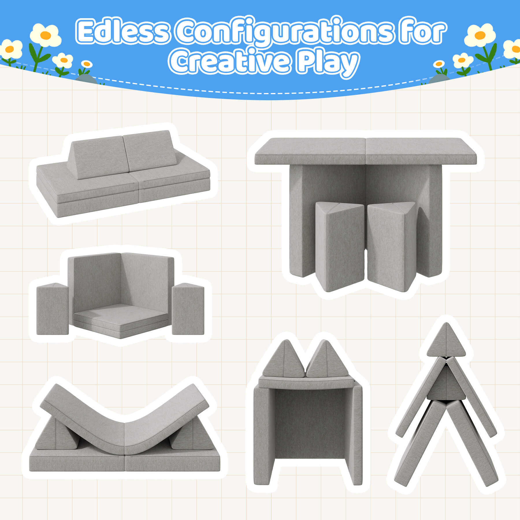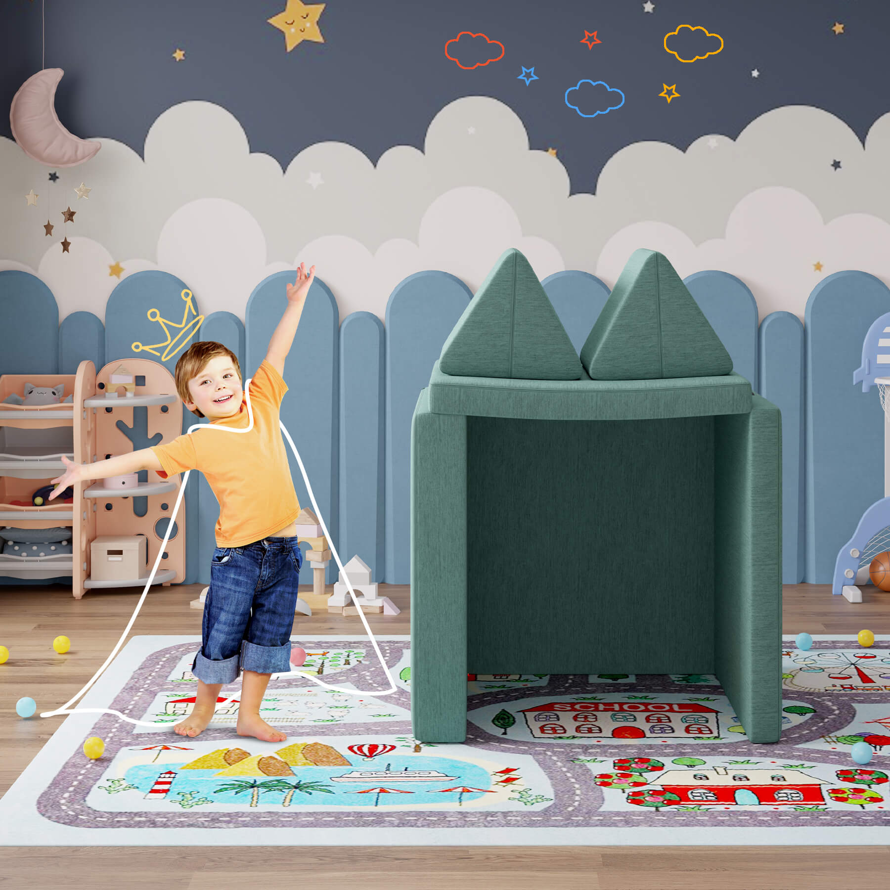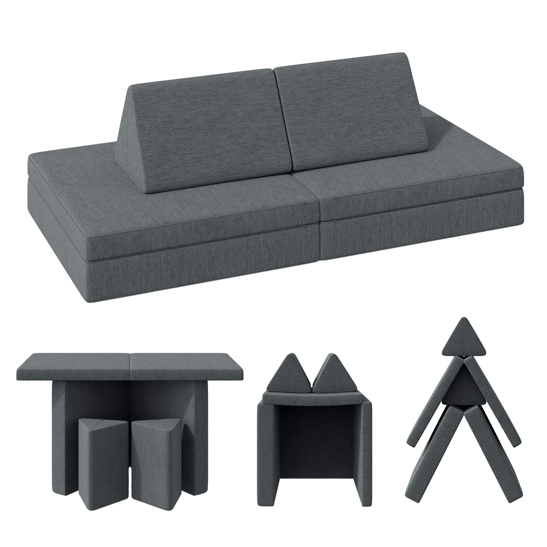 Unleash your child’s imagination with this **super-soft, 4-piece modular play couch** — the ultimate at-home playground! Easily transform it into a **fort, bed, tunnel, stage, or ball pit**, and let the adventures begin. Perfect for toddlers and preschoolers who love to climb, crawl, and create. 🎉👶✨
