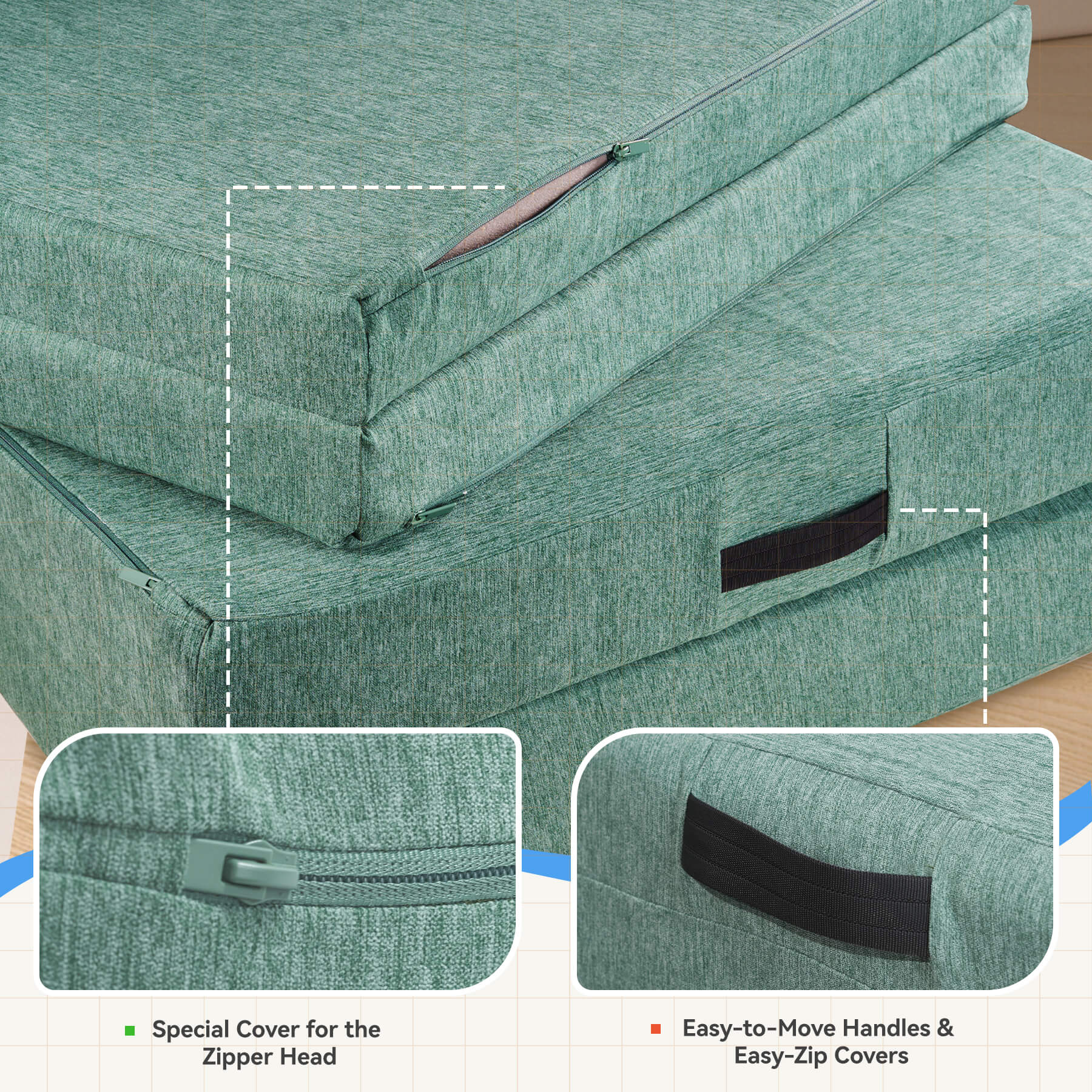 - 🔒 **Zipper head protection cover** — prevents kids from opening and accessing foam (no choking hazard)