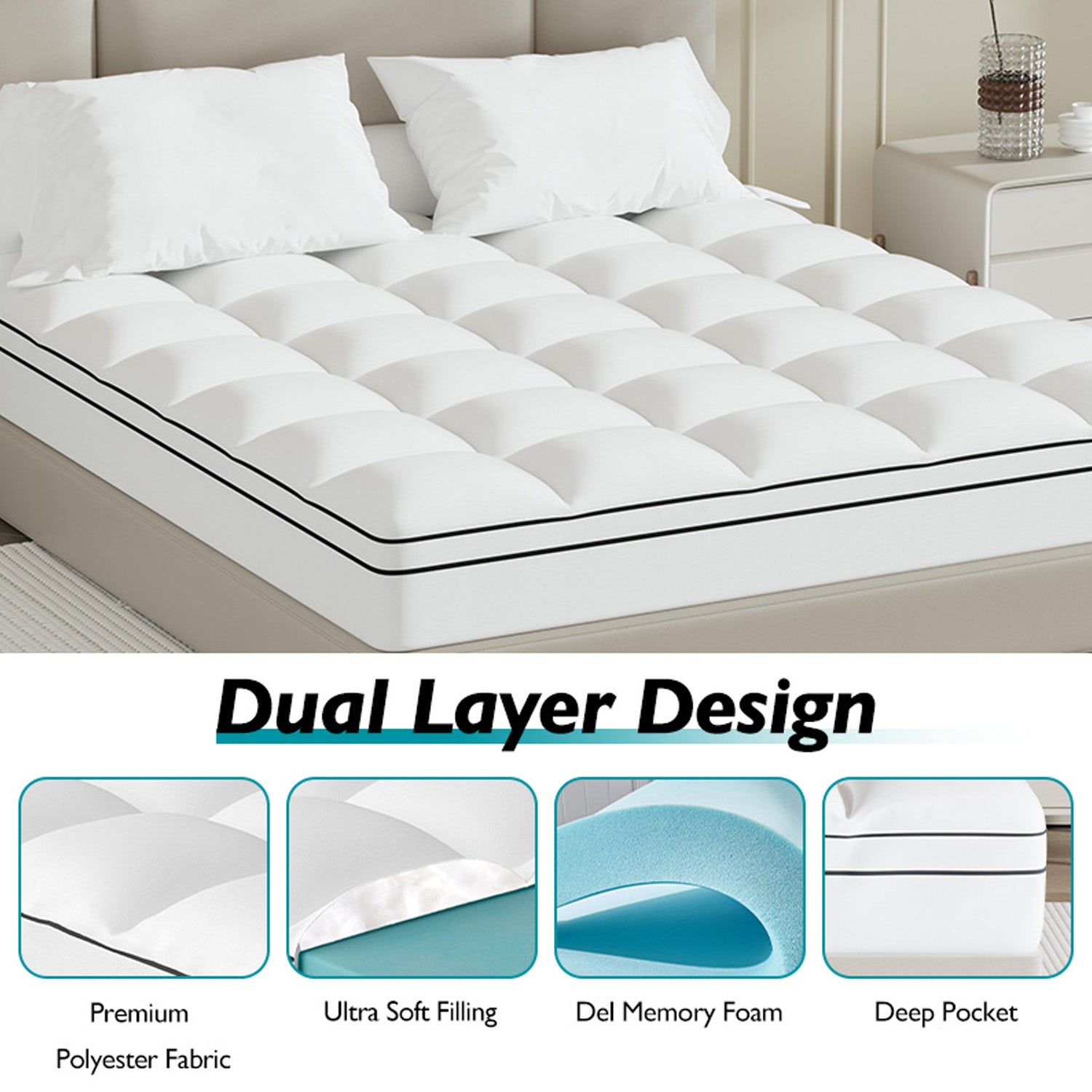 Nalupatio Full-Size Memory Foam Mattress Topper 4" Dual-Layer