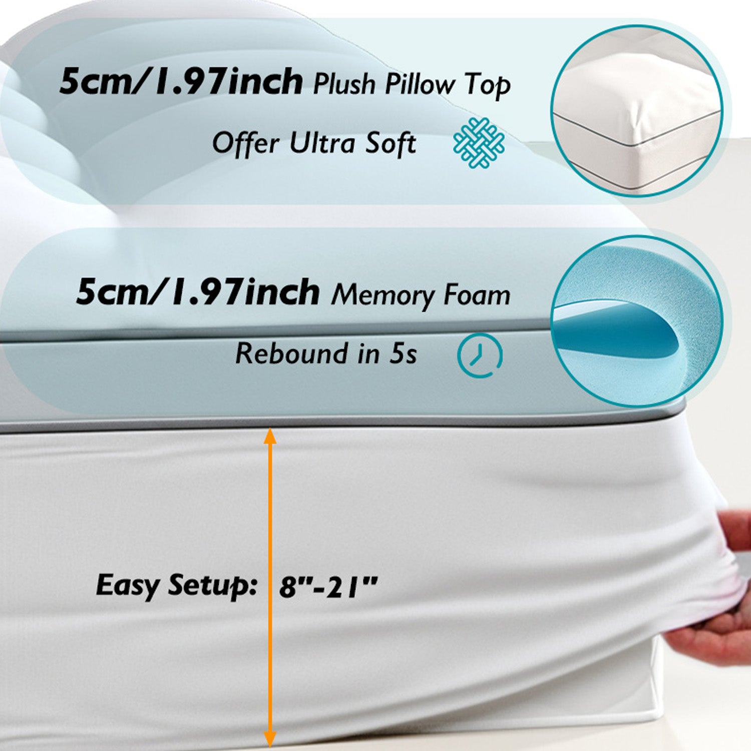 - 📏 **8”–21” deep elastic pockets** + 360° stretch skirt — stays securely in place on any mattress