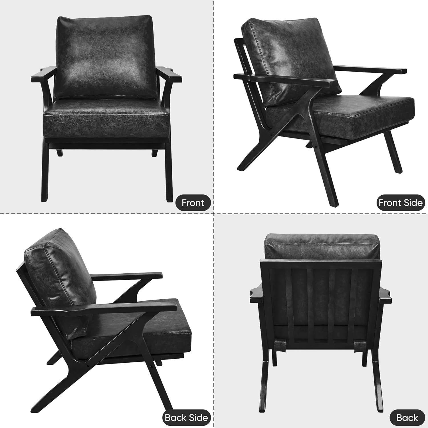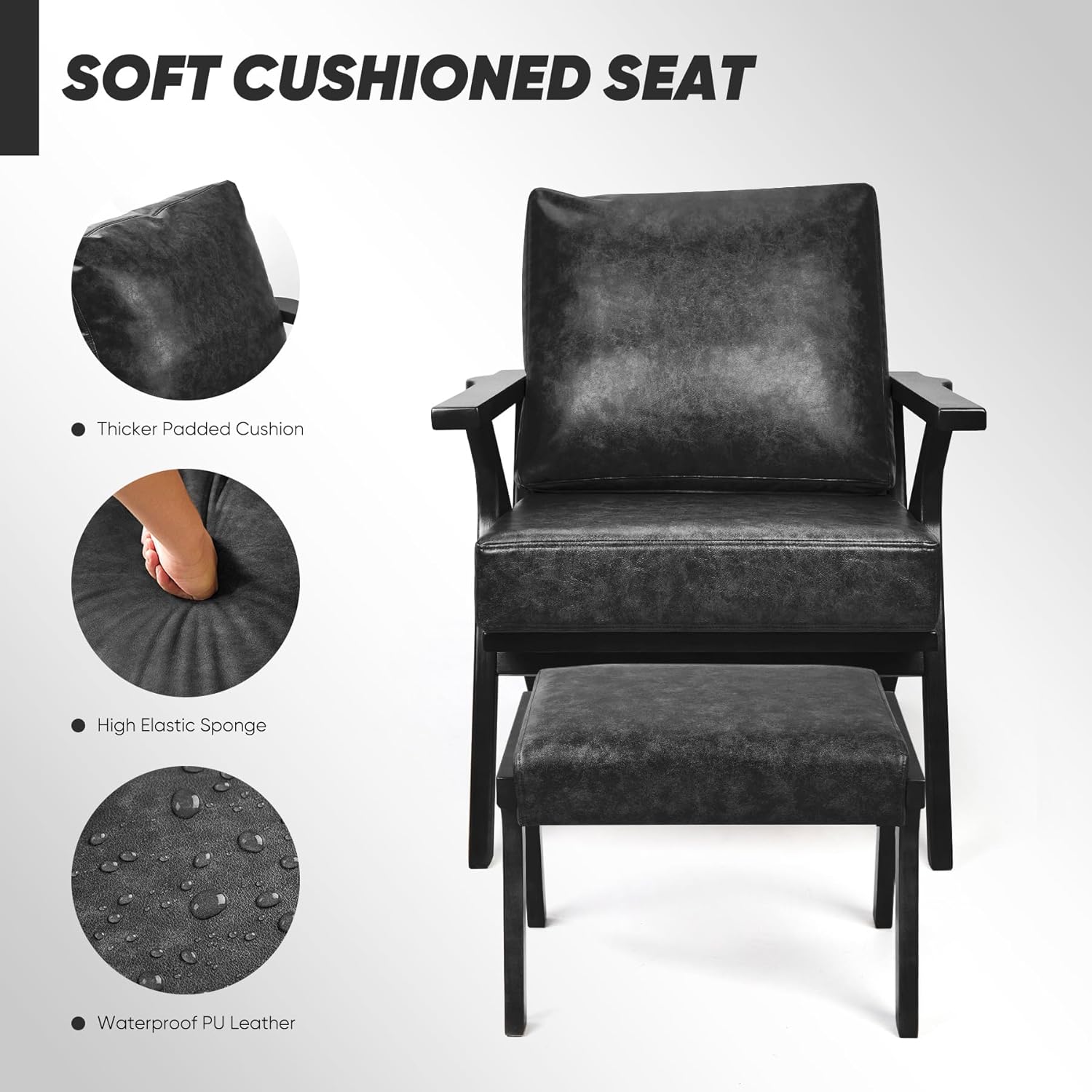 Nalupatio Mid-Century Accent Chair with Ottoman – PU Leather Upholstered