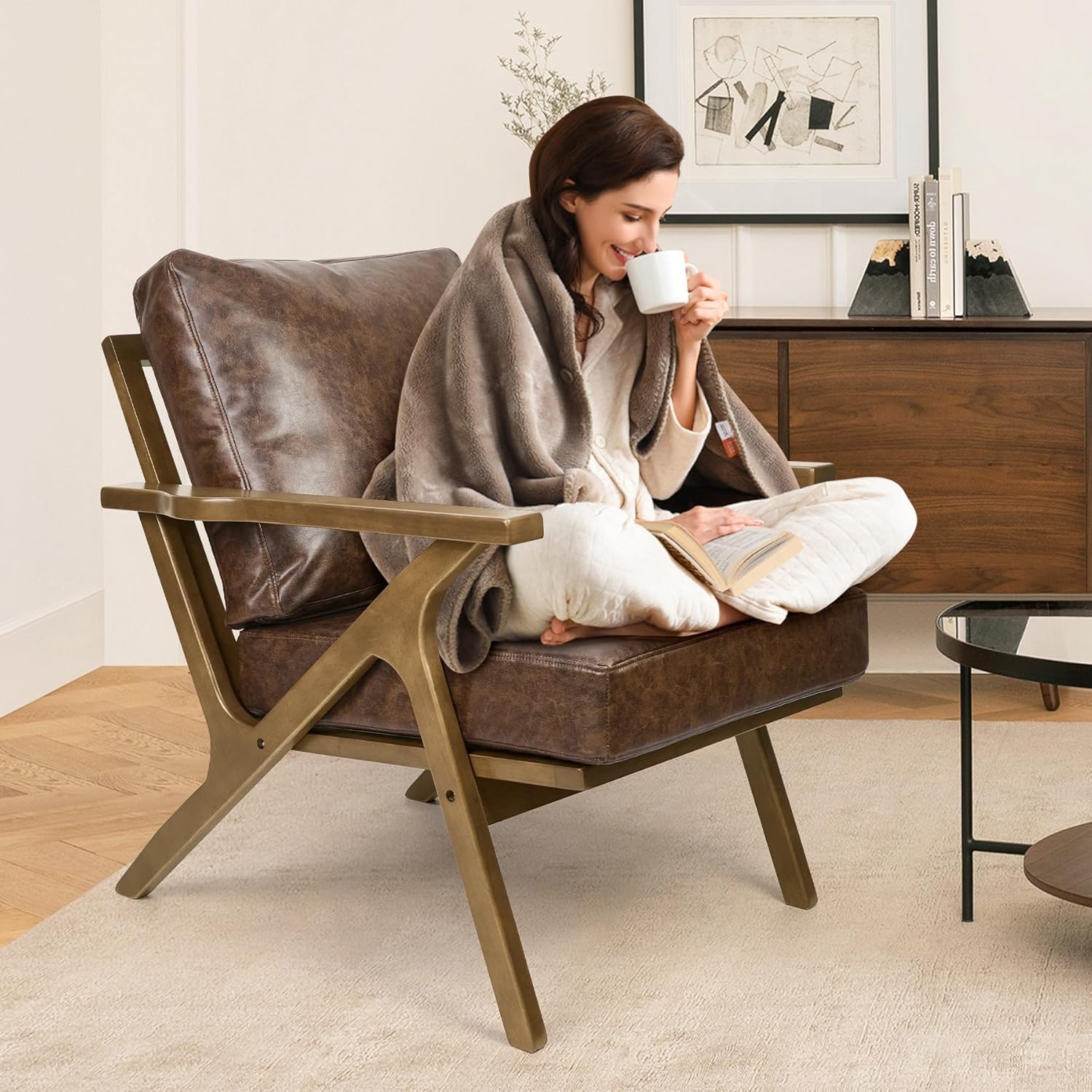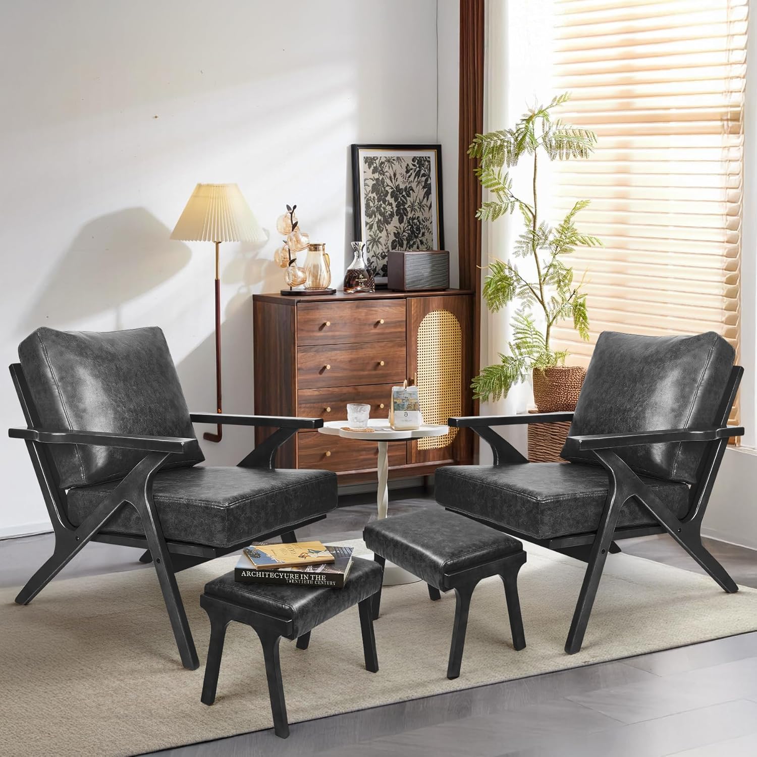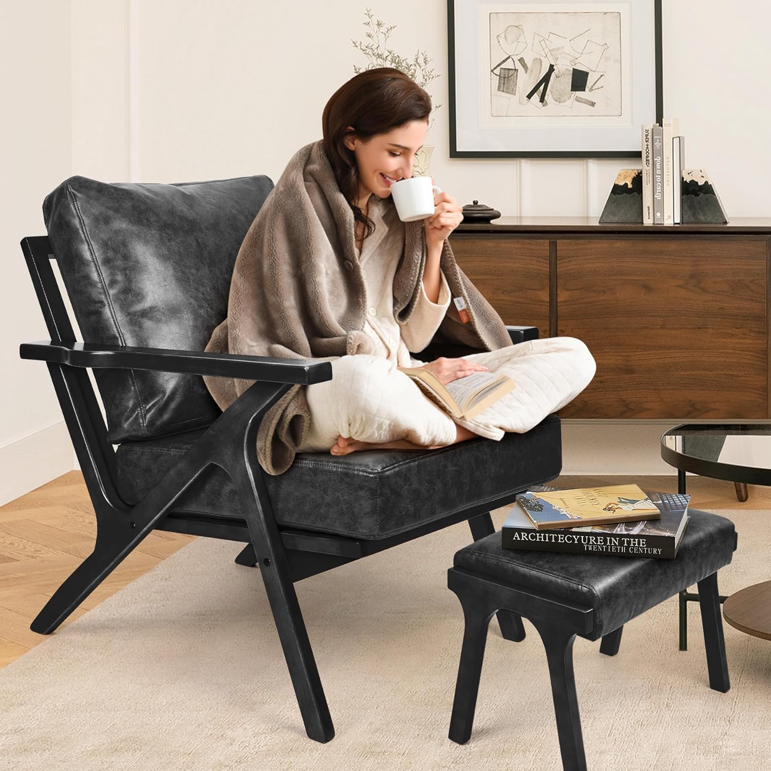 Bring timeless style and everyday comfort into your home with this **elegant mid-century modern accent chair and ottoman set** — crafted with a solid birch wood frame, plush high-density cushions, and soft PU leather upholstery. Whether you're reading, relaxing, or enjoying a quiet moment, it’s the perfect retreat. 🌿✨