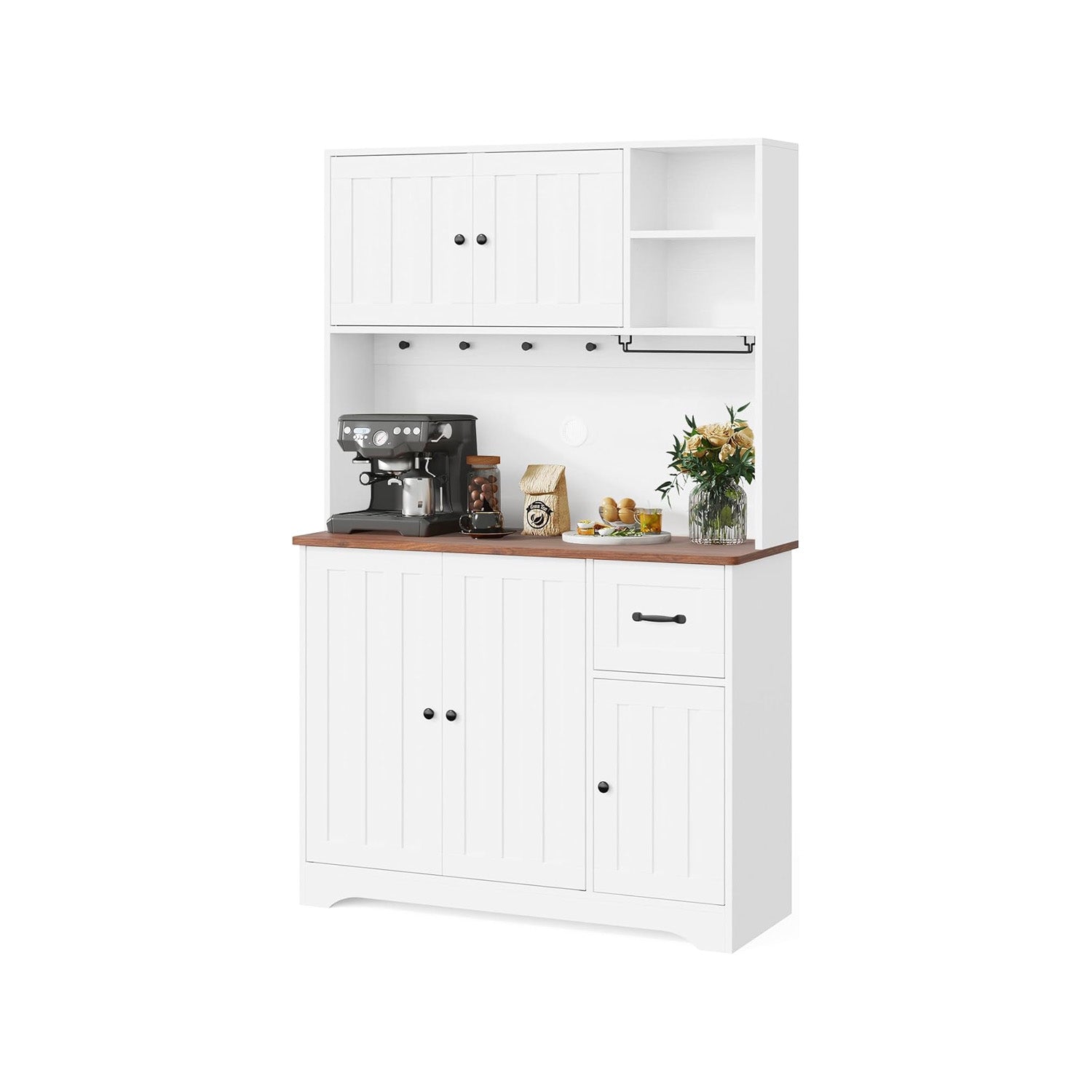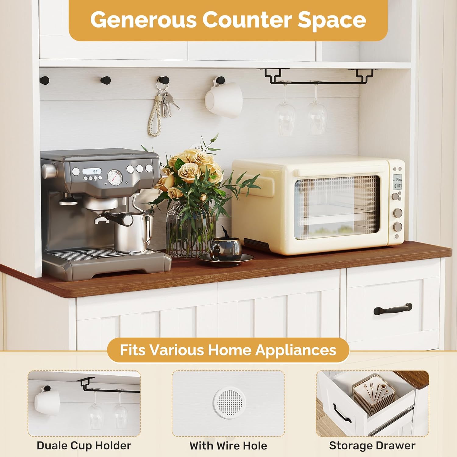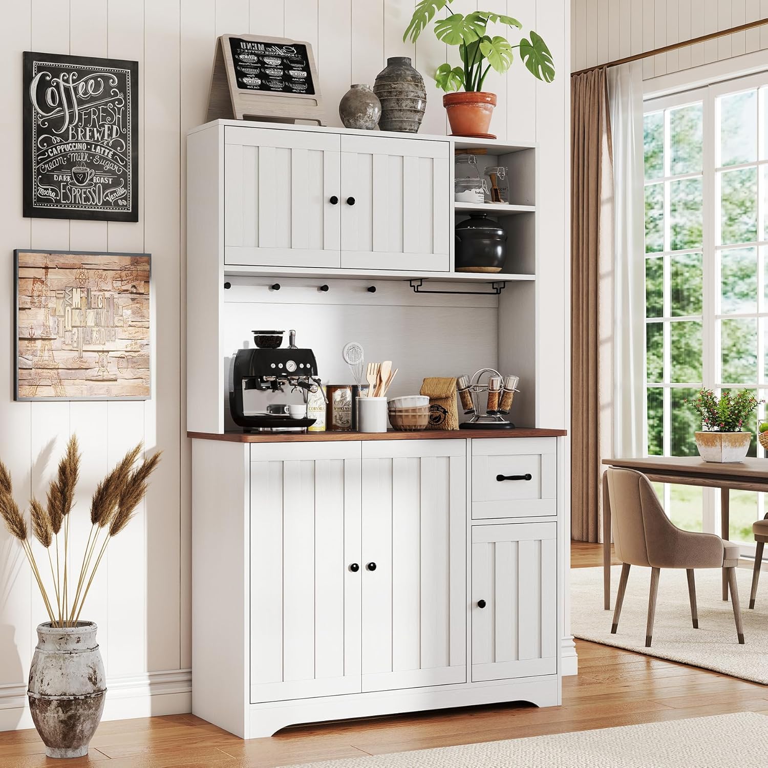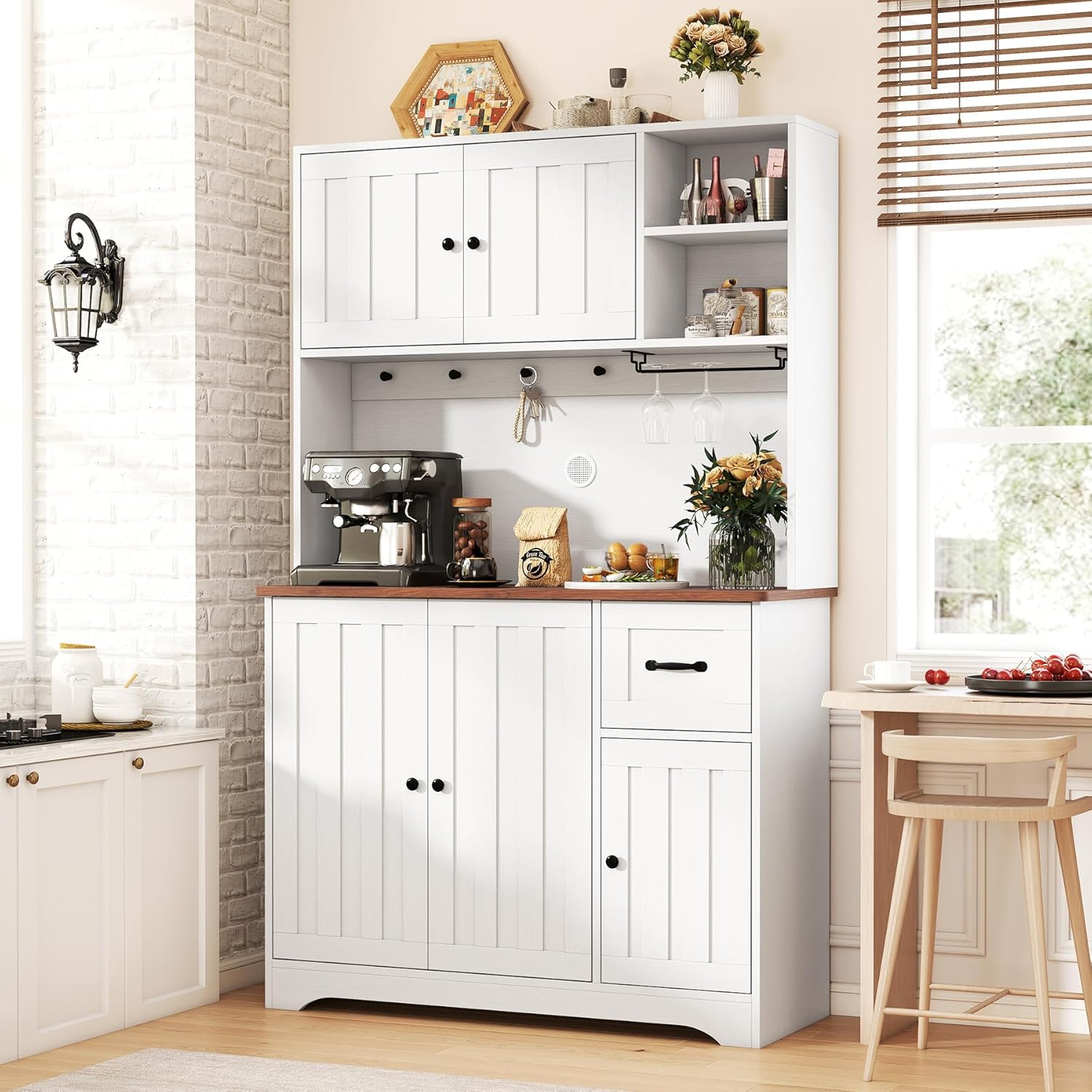 Bring charm and serious storage power to your kitchen with this elegant farmhouse pantry cabinet. Featuring a **natural wood countertop**, spacious shelving, and a sleek white finish, it’s the perfect blend of style and smart organization. ☕🏡