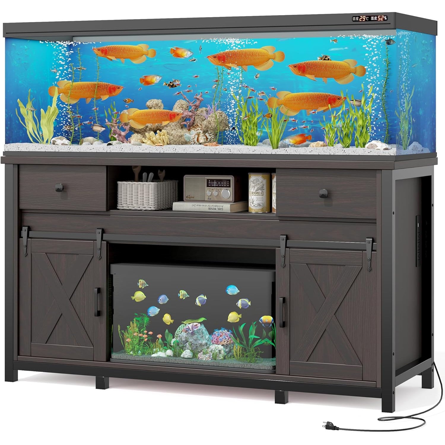 Kerilyn Aquarium Stand 55-120 Gal 1000lb Capacity Power Outlet Barn Door Design