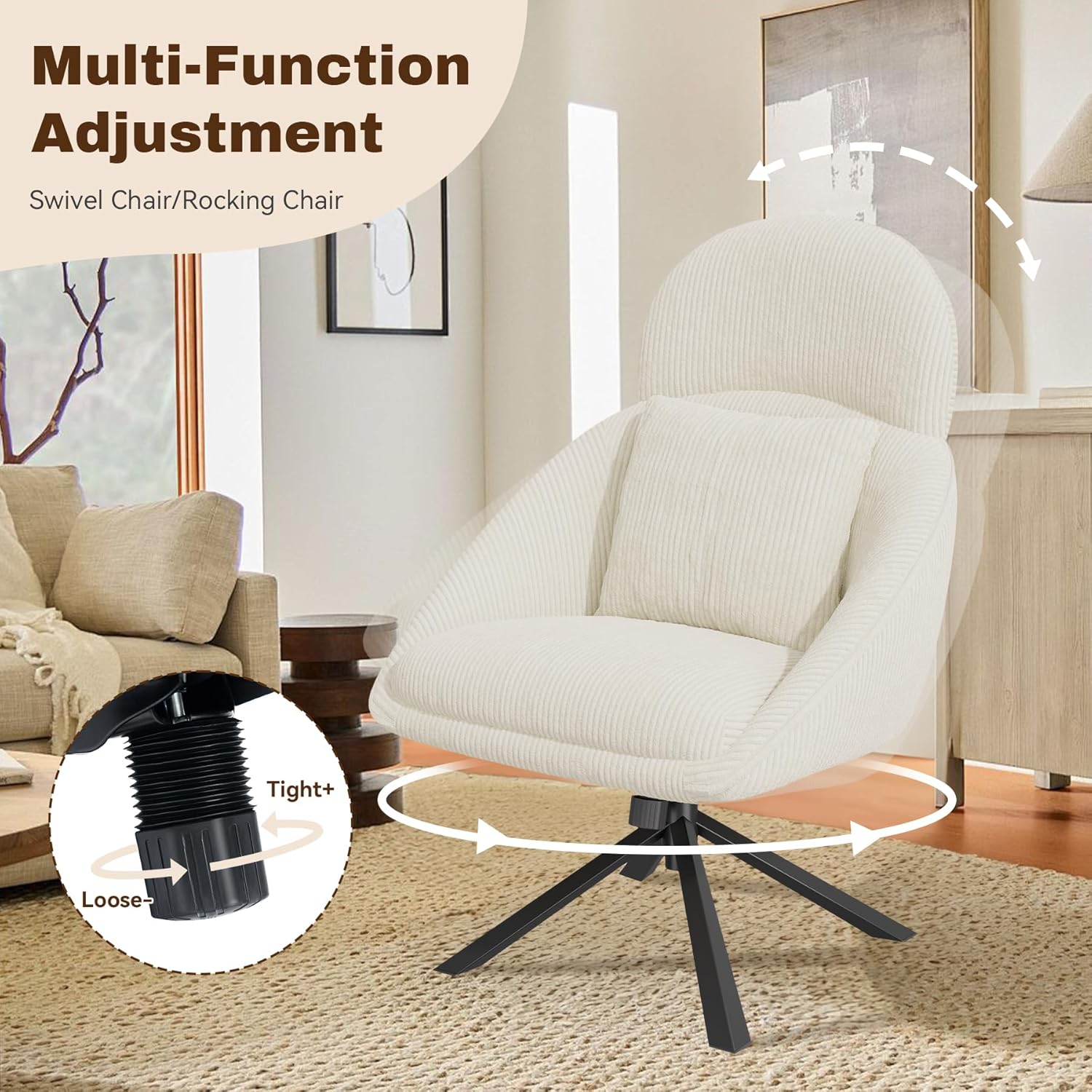 Unwind in total comfort with this **luxurious swivel rocking accent chair** — designed to soothe, support, and elevate any space. Wrapped in soft corduroy fabric and filled with high-resilience sponge, it offers a cloud-like sit, gentle rocking motion, and an **adjustable headrest** for personalized comfort. Whether you're reading, nursing, or relaxing after work, this chair is your new favorite retreat. 🌿✨