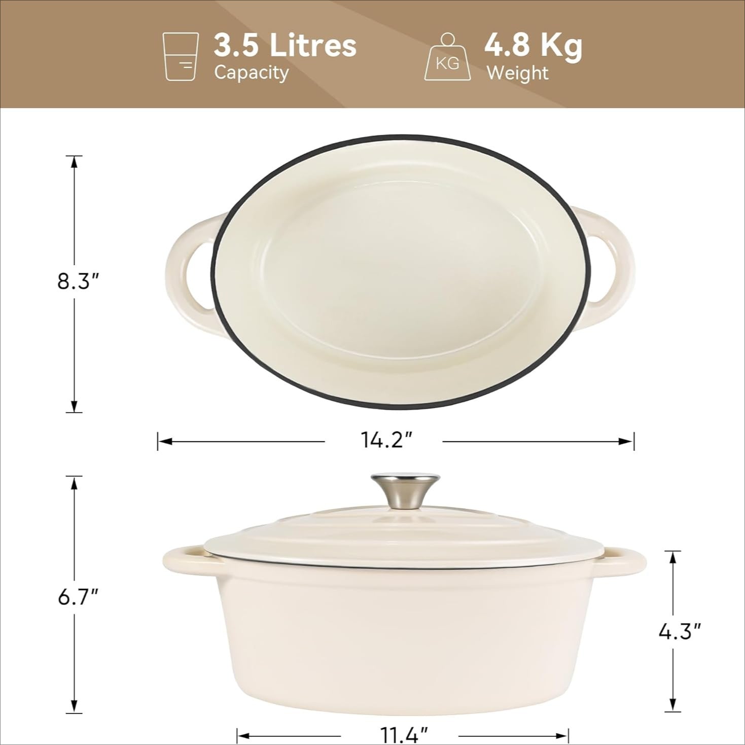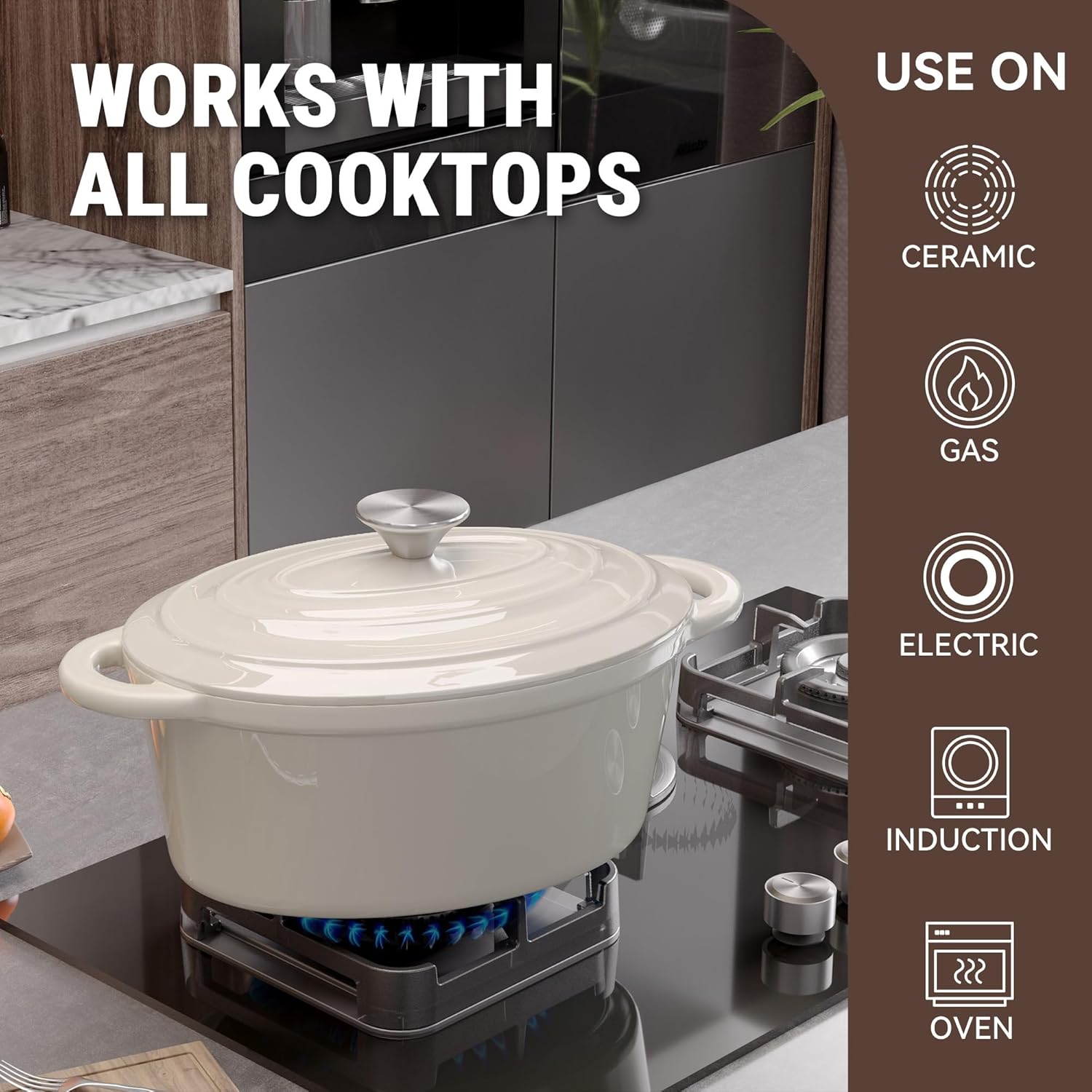 Kerilyn Oval Cast Iron Dutch Oven Pot 4.5 Quart Enameled Pot