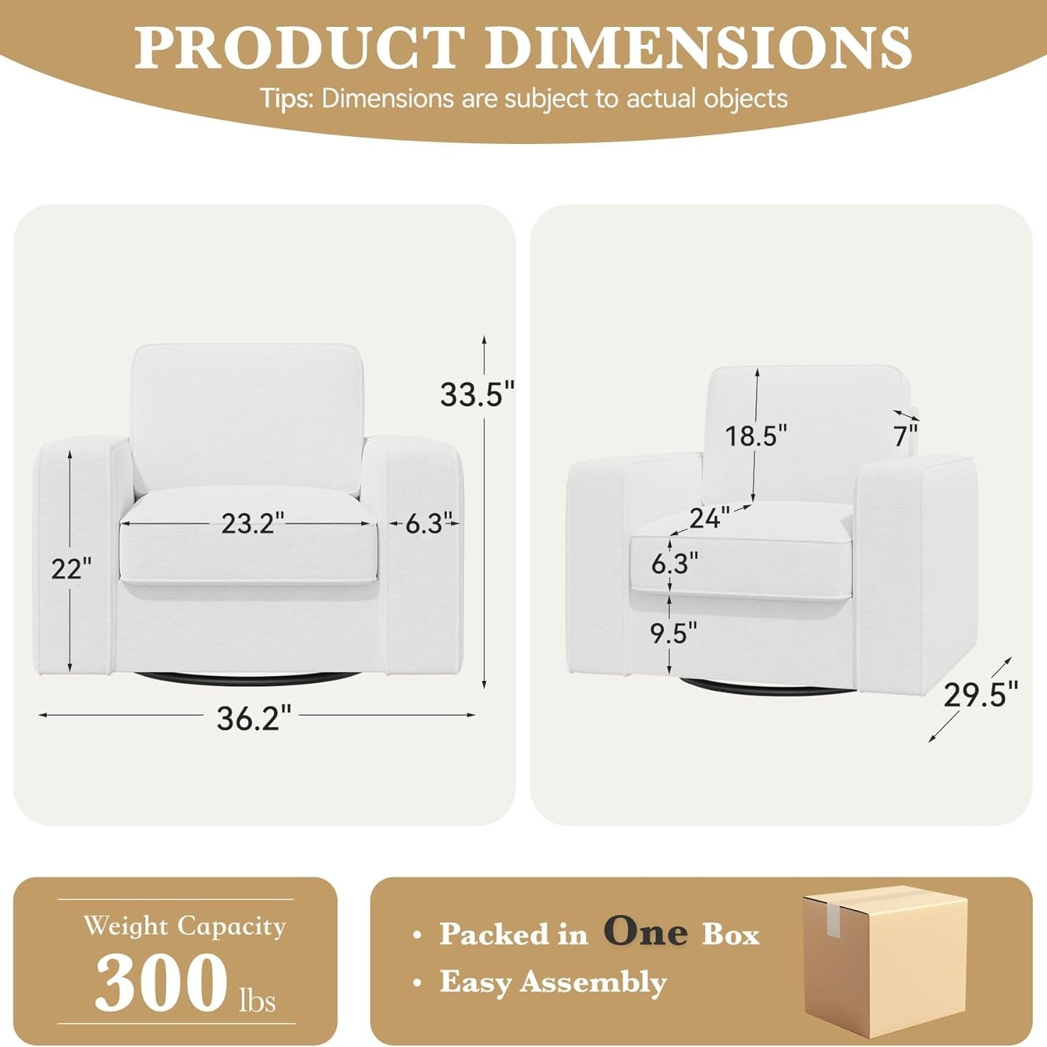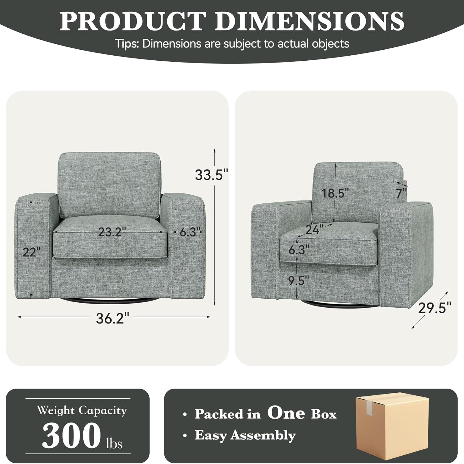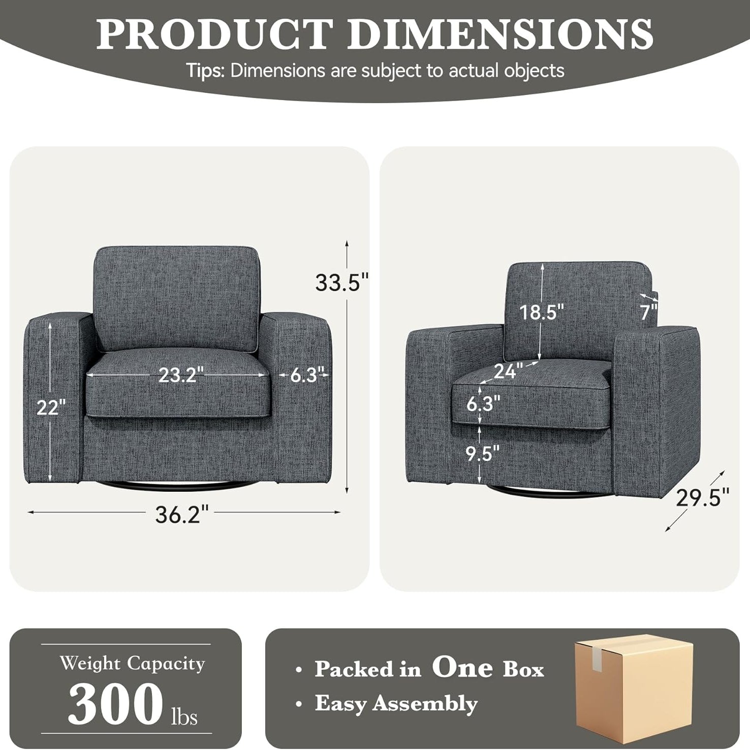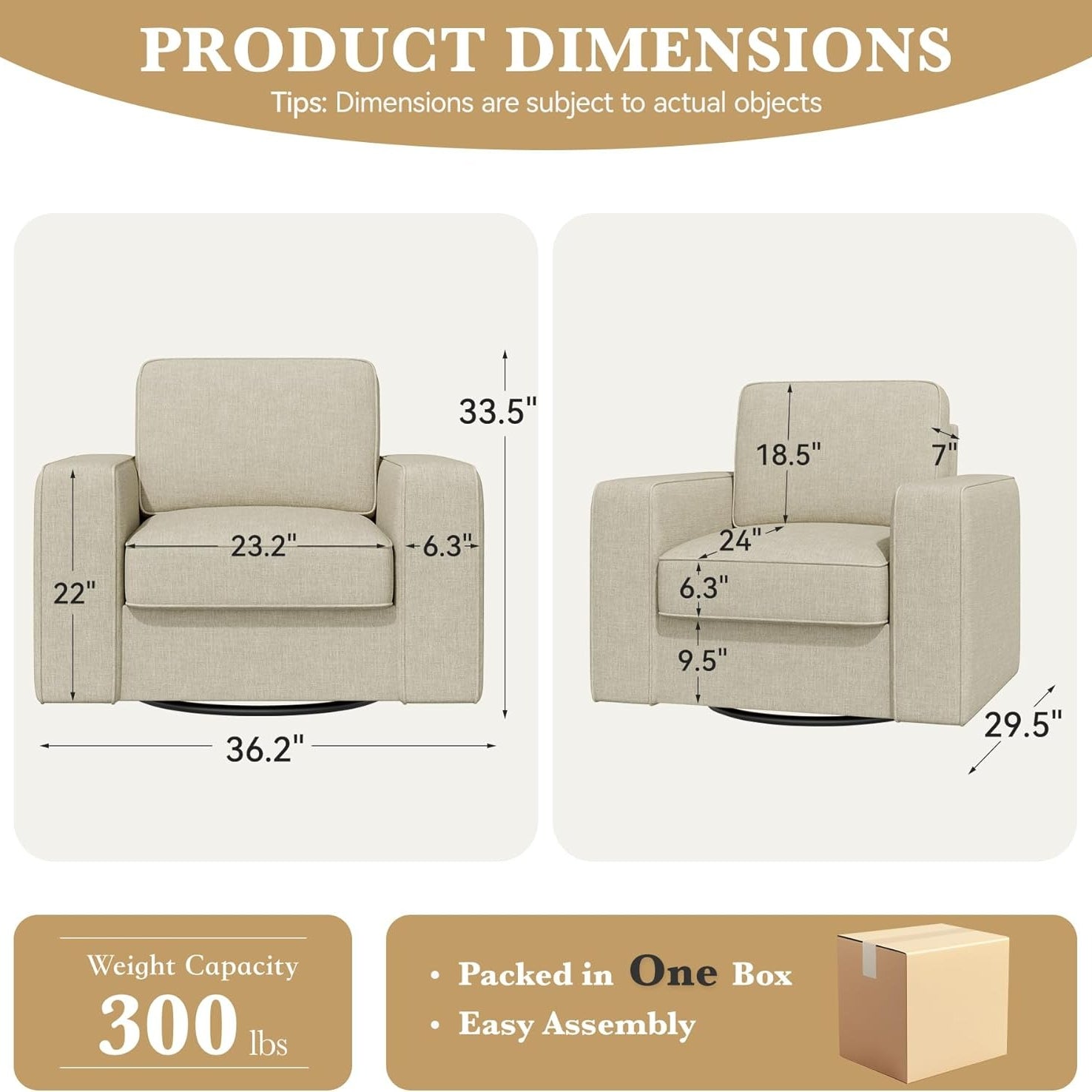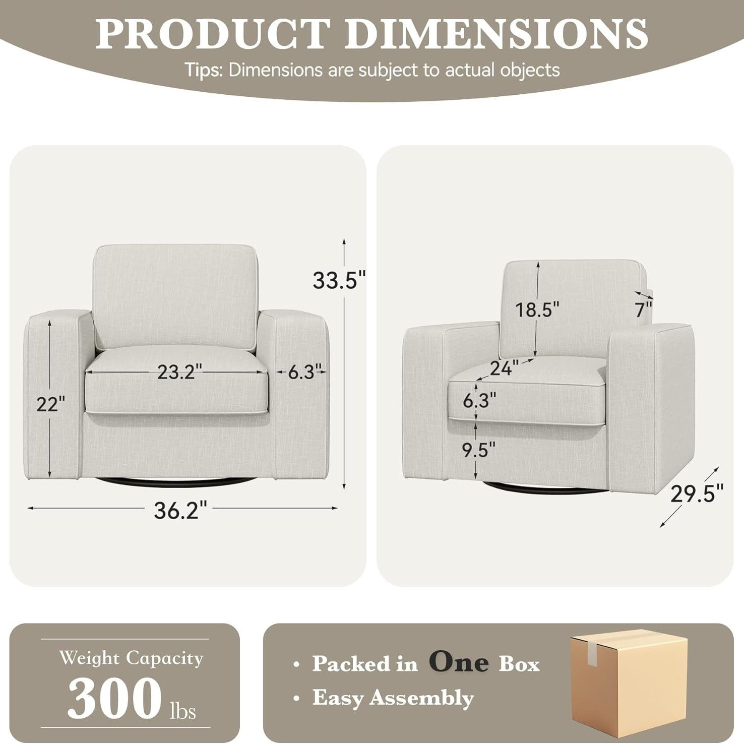 🪑 Linen Swivel Accent Chair – 360° Rotation & Mid-Century Style