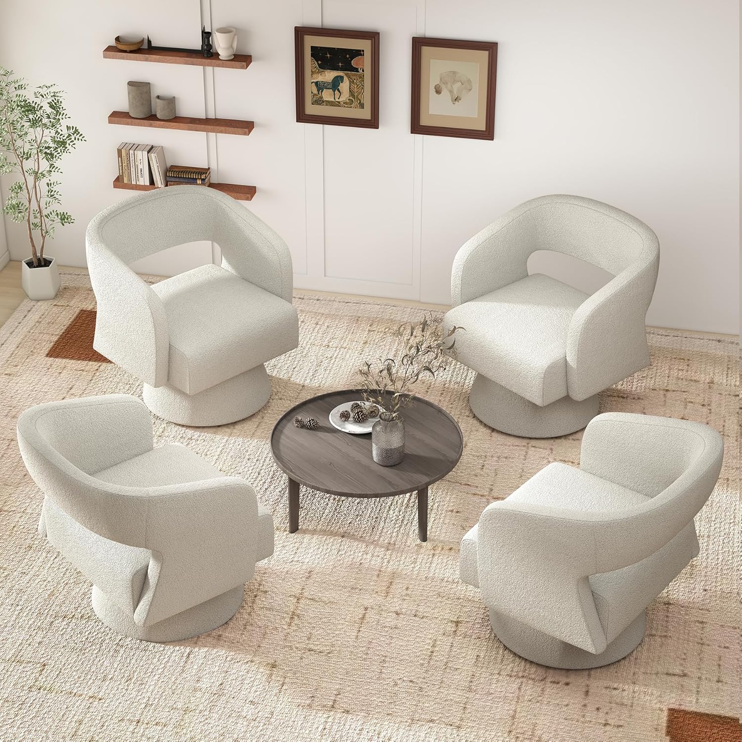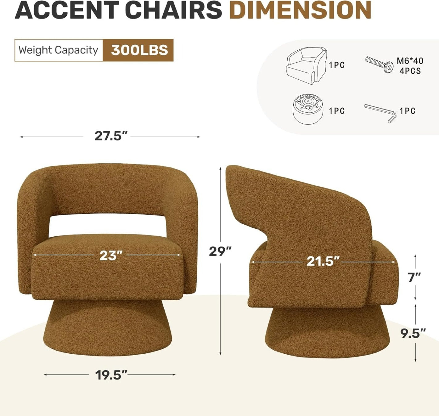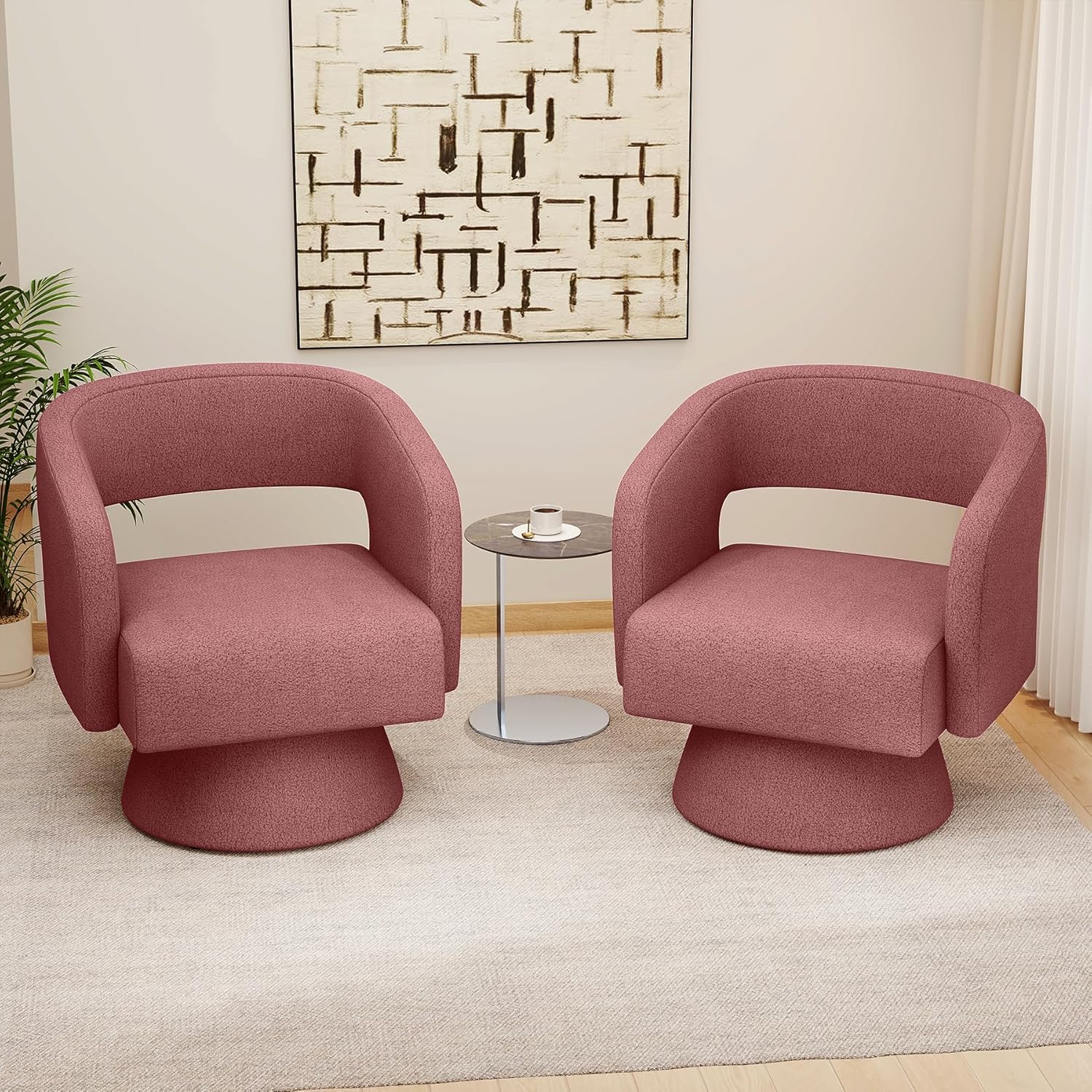 Nalupatio Swivel Barrel Chairs – Teddy Fabric, 360° Rotation Set of 2