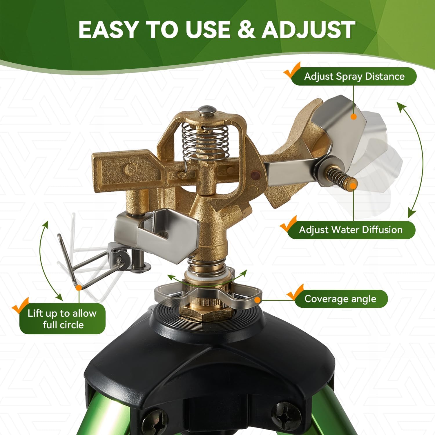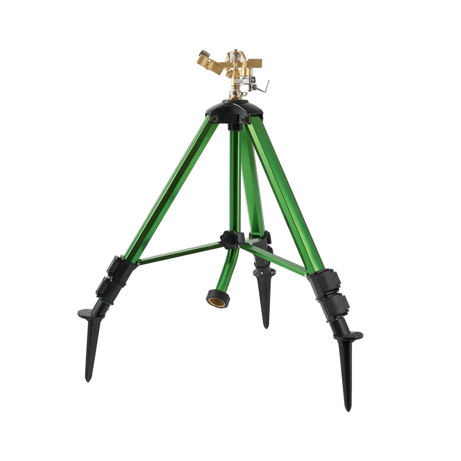 Nalupatio Heavy-Duty Brass Tripod Sprinkler – 360° Irrigation Flip Lock Legs