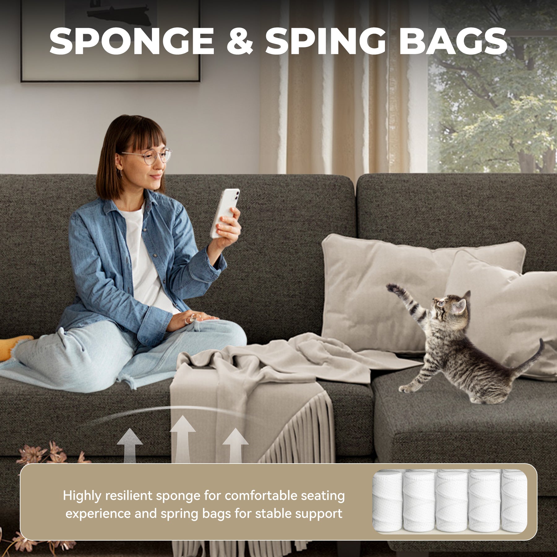 - 🧽 Cushions combine **layered foam + pocket spring packs** — plush on top, supportive underneath