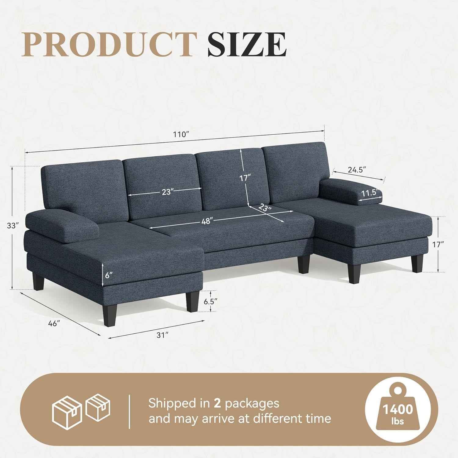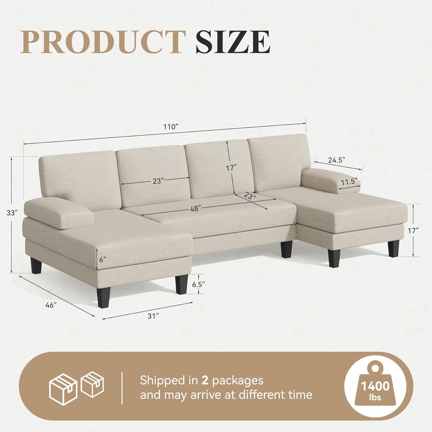 Elevate your living room with this **sleek, modern U-shaped sectional sofa** — thoughtfully designed with **two chaise lounges**, a breathable linen fabric cover, and a sturdy build that lasts. Whether you're lounging solo or hosting friends, it’s the ultimate blend of comfort, style, and practicality. 🌿✨