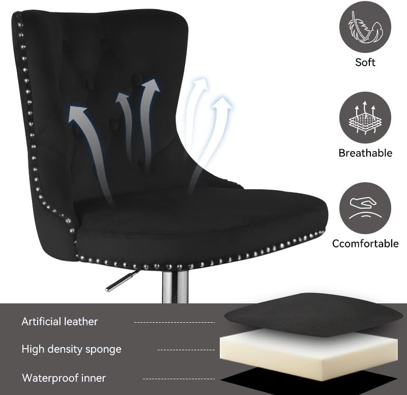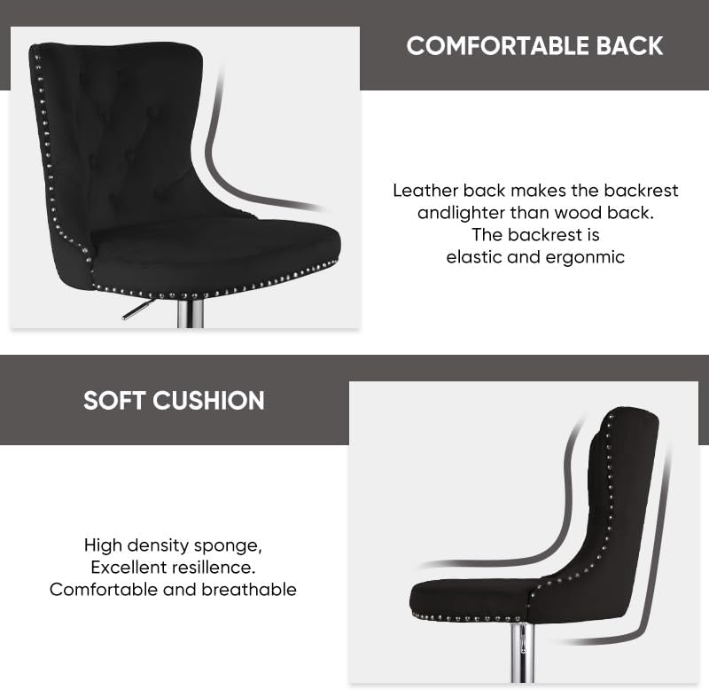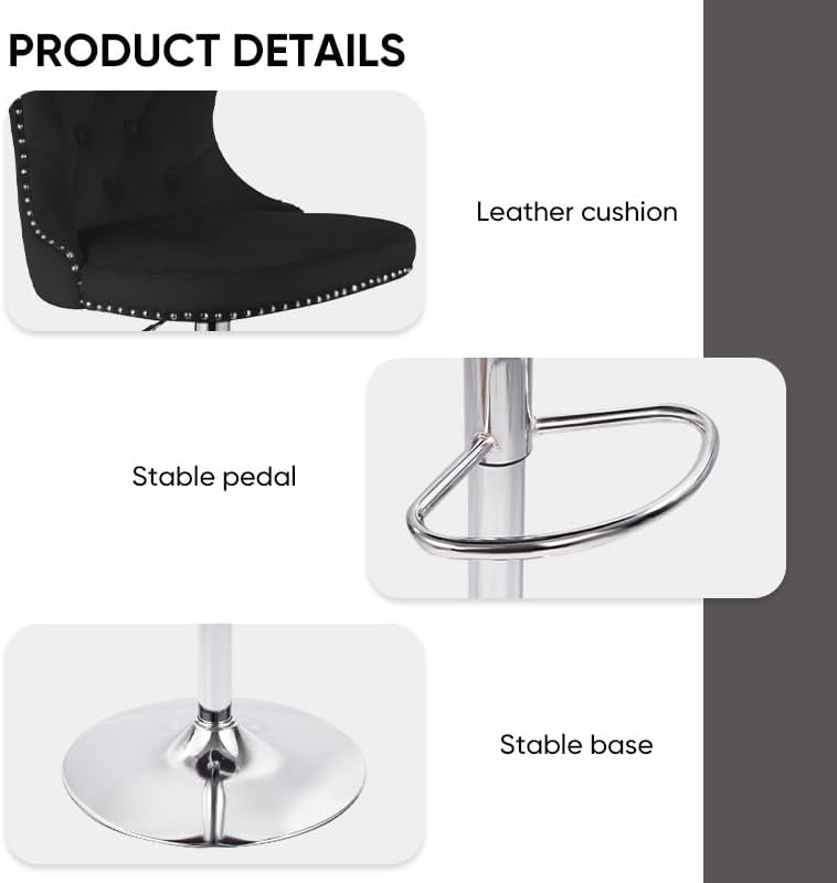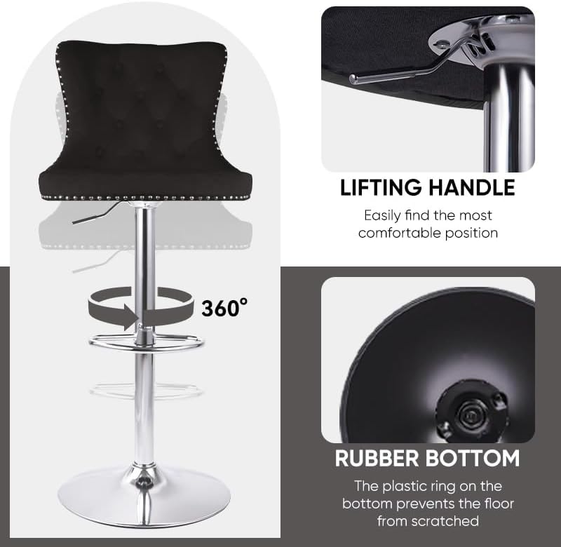 - 【Perfect Height & Rotation】: Easily adjust height (24.8" - 33.5") to fit any user or counter/bar. Enjoy smooth 360° swivel and a built-in footrest for comfort and mobility.